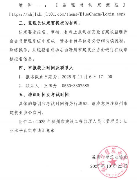 附件二:2025年滁州市建设工程监理人员(监理员)从业水平认定申请汇总表.xls