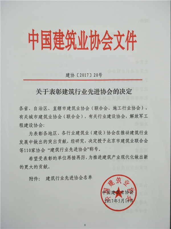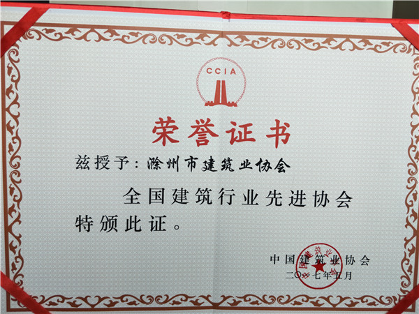 滁州市建筑业协会荣获“全国建筑行业先进协会”荣誉称号