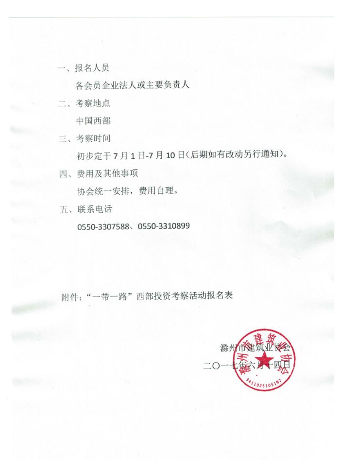 附件:滁州市建筑业协会“一带一路”西部投资考察活动报名表.doc