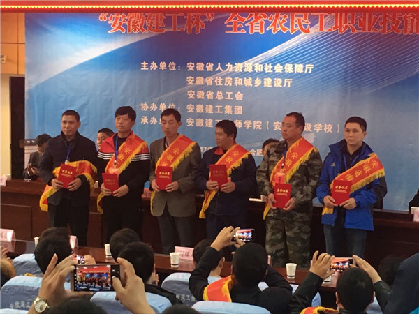 由安徽省人力资源和社会保障厅、安徽省住房和城乡建设厅、安徽省总工会主办,安徽建工集团协办、安徽技师学院承办的“安徽建工杯”农民工技能竞赛决赛于2017年11月24日-25日在合肥圆满落幕。